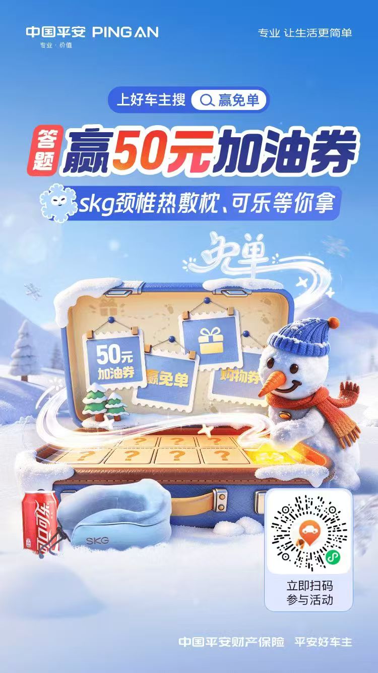 平安好车主|上好车主搜·赢免单,参与趣味答题,有机会赢50元加油券
