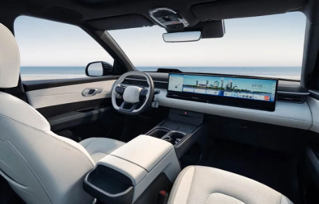 内饰方面,该车采用全新的设计风格,平直的中控台线条搭配上深下浅的配色风格,营造出不错的质感。同时,该车采用三辐式多功能方向盘以及由大尺寸中控屏+副驾娱乐屏组成的27英寸一体式连屏设计,符合当下用户对于新能源车型的部分功能需求。此外,官方表示,该车配备29处储物空间、滑盖隐私盒、双向拓展杯架预计表现十分亮眼。
