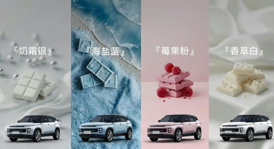 吉利ICON巧克力的定位是小型SUV,在外观方面它与现款基本保持一致。只是针对细节进行了调整,并拥有了四款全新的配色。其他的变化在于新车换装了传统的门把手设计,而非隐藏式门把手;另外车身包围采用了全黑色装饰,取消了镀铬装饰。车身尺寸方面,依旧保持长宽高4350/1815/1620mm,轴距2640mm。新车还配备了智能电动尾门。新车外观颜色包括奶霜银、海盐蓝、莓果粉、香草白。